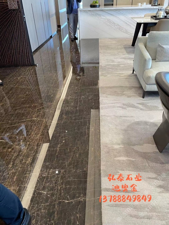 迪奧金底色偏深,表面賦以金黃色及少量白色的線狀紋路,板面表現(xiàn)力非常搶眼,材質(zhì)能適用于各種不同的異型加工方式,是的優(yōu)質(zhì)工裝材料,不同于以往的黑色系大理石帶來(lái)的沉重感,迪奧金帶來(lái)的更多的是時(shí)尚感與尊貴感。