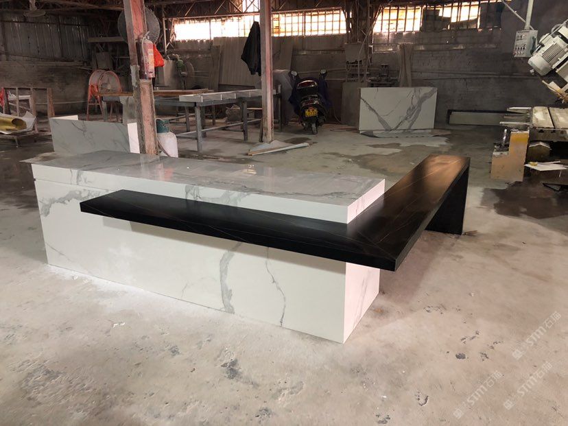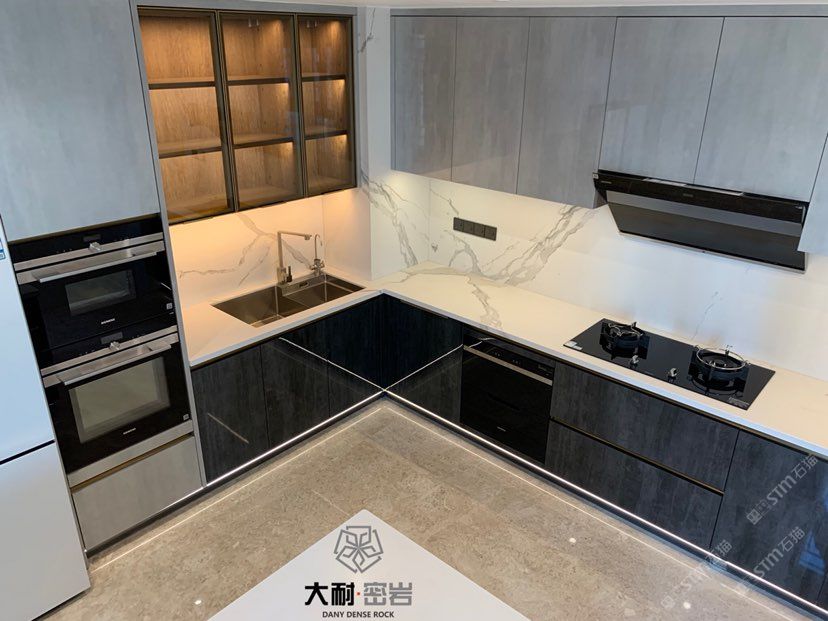 新品種:巖板,硬度坑比石英石,亮度高,耐磨耐刮,防火防高溫,零滲透極耐污,超耐腐蝕,無毒無輻射。