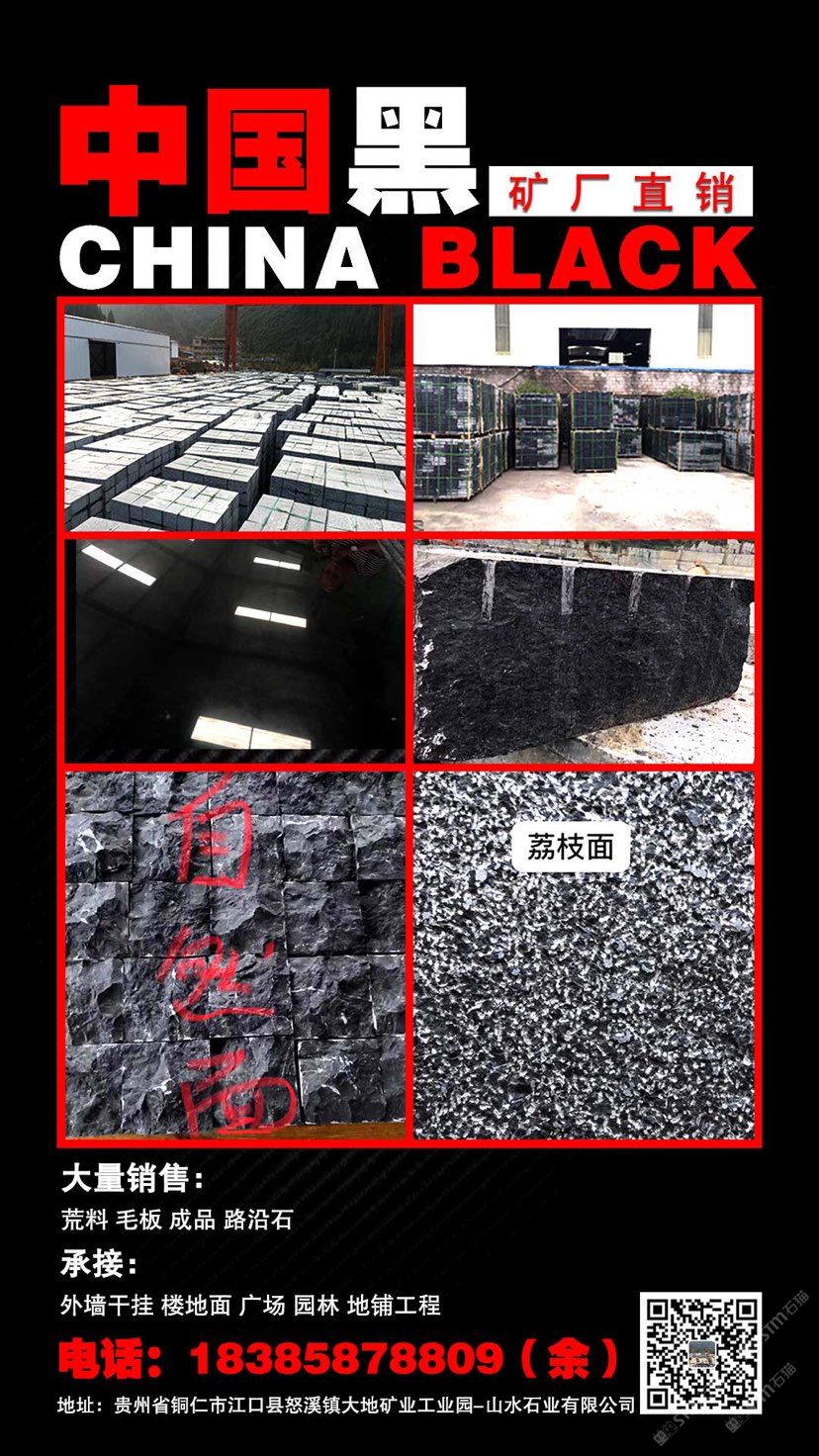 大地礦業(yè)-山水石業(yè)成立于2019年,注冊(cè)資金8000萬,位于貴州銅仁,是一家集礦石開采、開發(fā)、加工、銷售為一體的大型民營企業(yè)。 公司2010年開始開發(fā)石材,此石材命名為:“中國黑”?,F(xiàn)已取得采礦權(quán)并有3本采礦證,采礦面積4.65平方公里,擁有三千多畝開采權(quán),年開采量達(dá)到10萬立方米。
