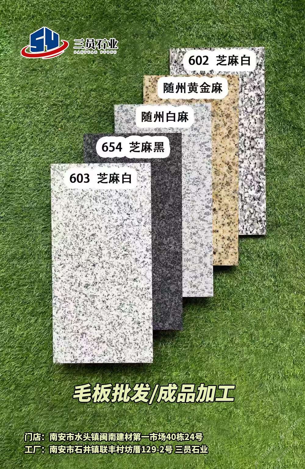 長泰654芝麻黑毛板批發(fā),成品加工,隨州白麻,黃金麻,毛板大批發(fā)商,門店位于水頭閩南建材市場40棟24號,加工廠位于延平大道聯(lián)豐村129-2號,配有專業(yè)Cad技術員,跟單員,歡迎新老顧客光臨。18965769150