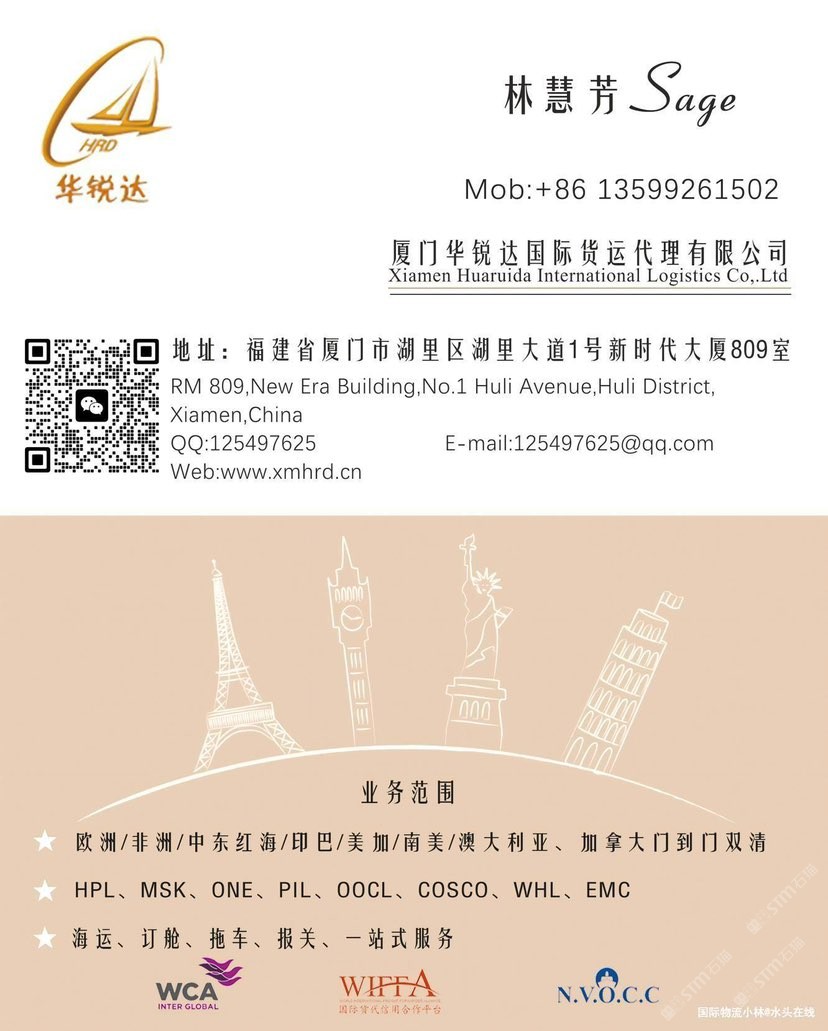 廈門華銳達(成立于2012年)是經(jīng)商務部批準的一級國際貨運代理及無船承運人(MOC-NV12724),總部位于廈門自貿(mào)區(qū)新時代大廈。
