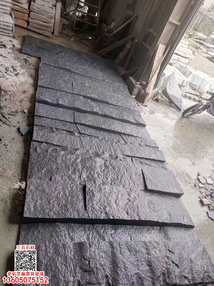 長(zhǎng)泰芝麻黑自然面背景墻文化石凹凸面幕墻石材芝麻灰