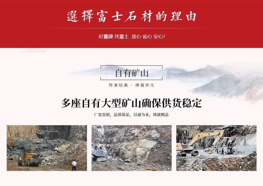 發(fā)布信息: 富士石材位于世界石雕之都——福建惠安,于1996年成立,主營墓碑生產(chǎn)、墓碑研發(fā)設(shè)計、公墓運營&殯儀館運營、公墓陵園景觀、規(guī)劃設(shè)計等一條龍殯葬服務(wù)。公司自成立以來不斷引進(jìn)當(dāng)今世界先進(jìn)的生產(chǎn)設(shè)備及加工工藝,用專業(yè)的設(shè)備造優(yōu)秀的產(chǎn)品。公司擁有一大批經(jīng)驗豐富的技術(shù)型管理人才,以嚴(yán)謹(jǐn)?shù)墓芾硖峁└咝У姆?wù),并配以先進(jìn)的電腦設(shè)計及現(xiàn)代化企業(yè)管理模式,秉承 “以客戶為中心、以質(zhì)量為根本,以市場為導(dǎo)向、以人文為基礎(chǔ)”的經(jīng)營理念,經(jīng)過將近三十年的發(fā)展,逐步發(fā)展成為一家集墓碑加工生產(chǎn)、研發(fā)設(shè)計、陵園規(guī)劃設(shè)計、公墓運營&殯儀館運營為一體的公司。
