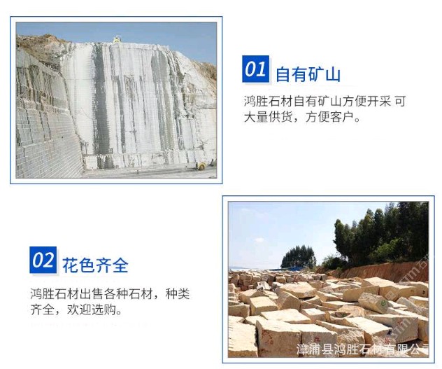 發(fā)布信息: 漳浦縣鴻勝石材有限公司是一家集礦山開(kāi)采、自營(yíng)加工生產(chǎn)、自主產(chǎn)供銷為一體的石業(yè)公司,公司擁有數(shù)家生產(chǎn)基地、手工加工場(chǎng)、大型礦山。公司創(chuàng)業(yè)歷程10年,憑著豐富的加工生產(chǎn)經(jīng)驗(yàn)、雄厚的技術(shù)力量和先進(jìn)的設(shè)備,產(chǎn)品遠(yuǎn)銷歐美、韓國(guó)、新加坡、臺(tái)灣等地,深受客戶的信賴與好評(píng)。 本公司產(chǎn)品主要有: 漳浦紅,漳浦黑,漳浦青,漳浦蝦紅,漳浦銹石,福建青,安山巖,芝麻黑,芝麻灰,沙漠棕等。