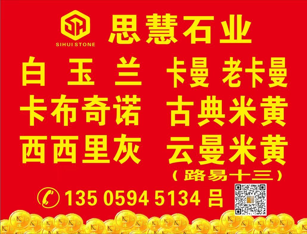 思慧石業(yè) 聯(lián)系人:呂    135****5134 查看 135****5134 查看 主營范圍: 大板批發(fā)、荒料、大理石加工、礦山、其他、石材外貿(mào)、水刀拼花、異型加工、花崗巖加工、石材雕刻、 企業(yè)地址:福建泉州東升石材城4號門通道走到底左手邊D26