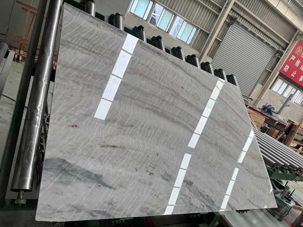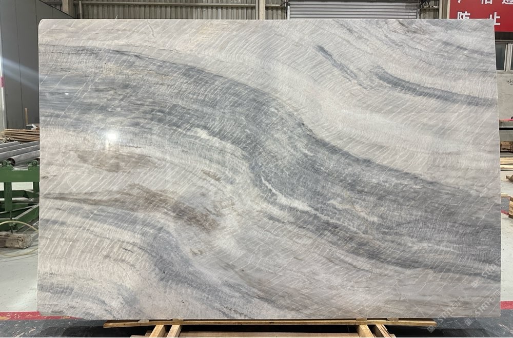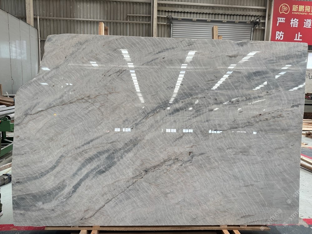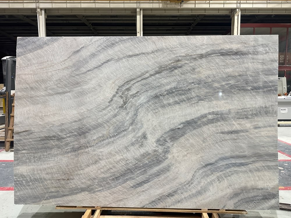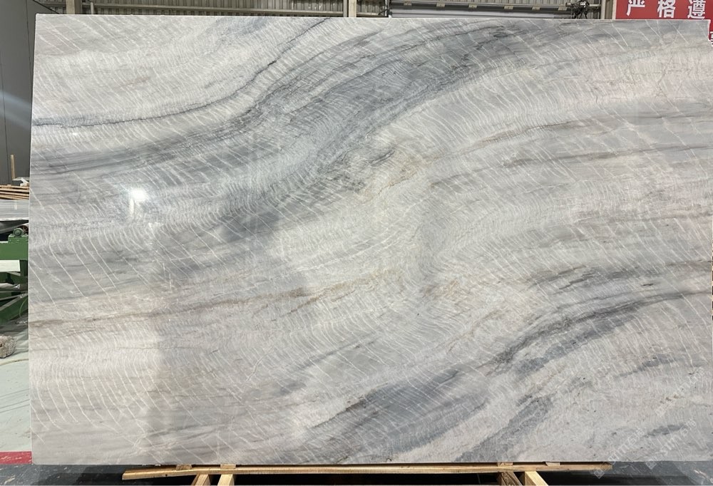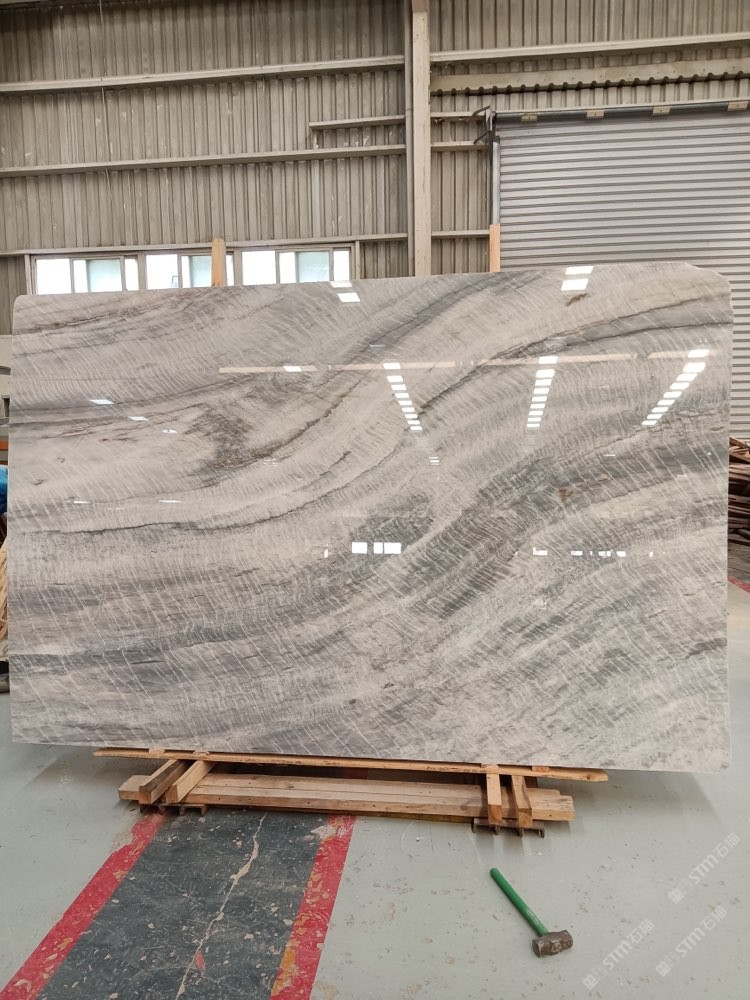 維多利亞白,波浪紋灰白石,灰白底帶些許藍(lán)色紋理