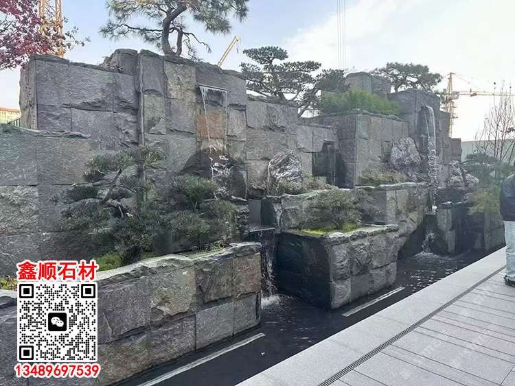 柬埔寨芝麻黑流水石文化石流水幕墻柬埔寨黑石皮背景墻