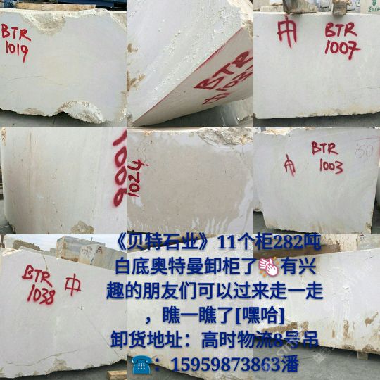發(fā)布信息: 新到白底奧特曼荒料,卸于高時(shí)物流8號(hào)吊,歡迎各位領(lǐng)導(dǎo)前來圍觀選購!?:15959873863潘