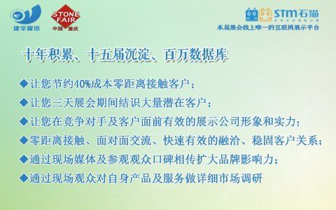 發(fā)布信息: 【2018第九屆重慶石材展5月在渝舉辦!】 主辦:重慶市工商聯(lián)(總商會)建材商會、重慶建宇展覽有限公司 時間:2018年5月10-12日 地點:重慶國際會議展覽中心 【往屆回顧】 上屆展會有來自國內(nèi)外近600余家知名企業(yè)和品牌參展,展示面積25000平方米,共接待了包括開發(fā)商、建筑商、承包商、裝飾設計、代理商、經(jīng)銷商等專業(yè)人士近3萬人次,被業(yè)界譽為中國西部地區(qū)專業(yè)性強,參展效果的行業(yè)盛會之一!同時也得到了重慶市政府部門及行業(yè)主管部門的大力支持和指導。 【參展范圍】 石材類:大理石/花崗石/砂巖荒料、石灰石、板巖等 板材類:天然石材/大理石/花崗石板材、環(huán)境石材 人造石類:人造石英石、人造文化石、人造石板材 石雕制品類:石雕、石刻制品、園林風景石、假山石等 環(huán)境裝飾類:卵石、仿古石、景觀石、磨菇石等 石材機械及加工設備:金剛石串珠鋸、研磨拋光設備、水射流切割機等 養(yǎng)護材料及設備:石材養(yǎng)護用品及設備、各類石材清洗、研磨劑、石材拋光劑等 【為什么選擇-建宇·建博會—十年積累、十五屆沉淀、百萬數(shù)據(jù)庫】 ?節(jié)約40%成本零距離接觸客戶 ?三天展會期間結識大量潛在客戶 ?在對手及客戶面前展示公司形象和實力 ?快速有效的融洽、穩(wěn)固客戶關系 ?通過現(xiàn)場媒體及觀眾口碑相傳擴大品牌影響力 ?通過現(xiàn)場觀眾對產(chǎn)品及服務做詳細市場調(diào)研 【聯(lián)系方式】 單 位: 重慶建宇展覽有限公司 電 話: 023-86376000/62925058 傳 真: 023-86376218 e-mail: jianyuzl@163.com 地 址: 重慶市南岸區(qū)南坪西路3號商業(yè)大樓29-4